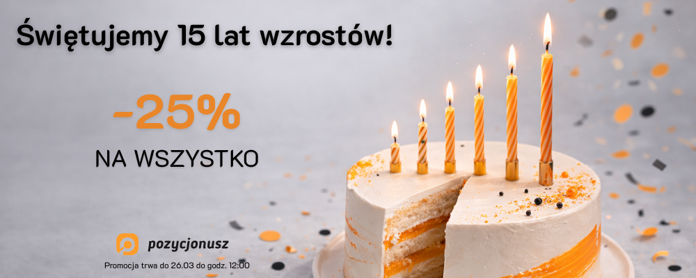 Świętujemy 15 lat wzrostów! Chcemy, aby nasz jubileusz stał się impulsem do rozwoju także dla Twojej firmy. Z tej okazji przygotowaliśmy wyjątkową ofertę: obniżamy o 25% ceny wszystkich pakietów oraz usług SEO i SEM w pierwszym miesiącu naszej współpracy. To doskonała okazja, by przekonać się w praktyce, jak nasze autorskie strategie mogą odmienić wyniki Twojej strony.