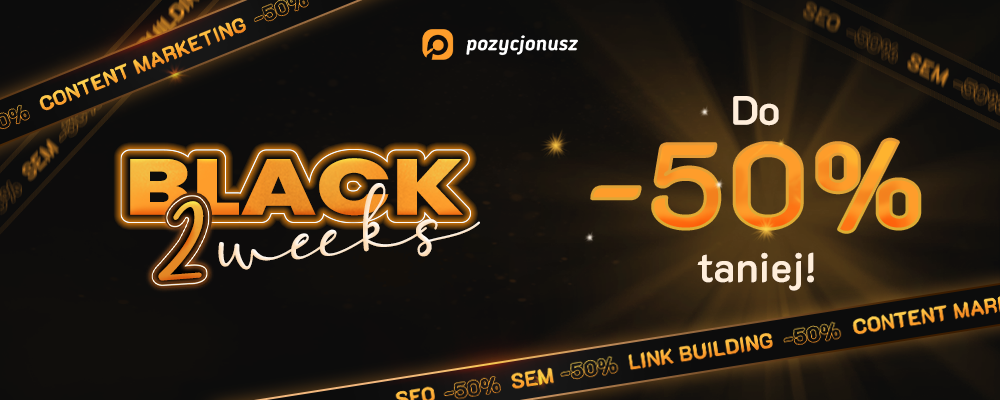 Dziś (19.11.2025) o 12:00 ruszamy z Waszą ulubioną promocją, a więc Black2Weeks. Potrwa ona do 3.12.2025 r do 12:00 i ani minutki dłużej. Jest to świetna okazja, aby kupić Pakiety SEO w najniższych cenach jakie oferujemy w roku.