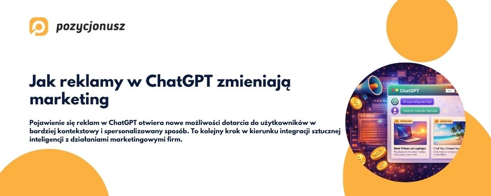 Reklamy w ChatGPT to nowy format promocji osadzony w kontekście rozmowy z AI. Zrozumienie jego zasad pozwala lepiej przygotować strategię marketingową i wykorzystać przewagę pierwszeństwa. W artykule wyjaśniamy mechanizmy działania, wpływ na decyzje użytkowników oraz relację z pozycjonowaniem.